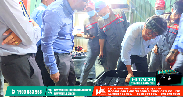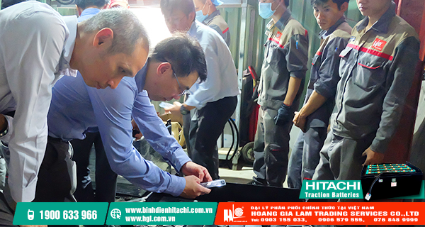 Nhân dịp này, đội ngũ Nhân viên Kỹ thuật HGL Co.,Ltd đã có một buổi trao đổi và chia sẻ kinh nghiệm lắp đặt và kiểm tra bình điện xe nâng với các chuyên gia đến từ Hitachi Chemical Co.,Ltd.