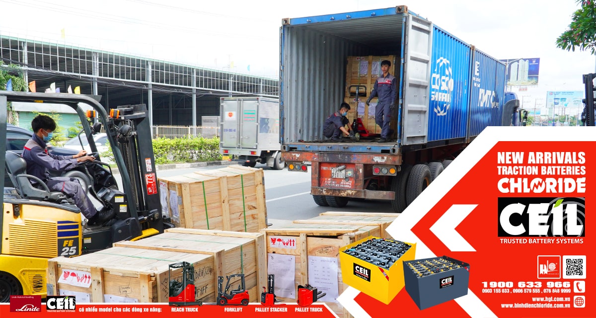 Tháng 6 vừa qua, các container bình điện xe nâng CEIL (CHLORIDE) mới 100% lại tiếp tục về Việt Nam.