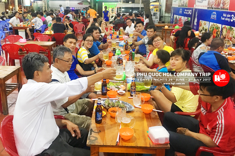 Nhân viên HGL Corp họp mặt chung vui tại chợ đêm Phú Quốc.