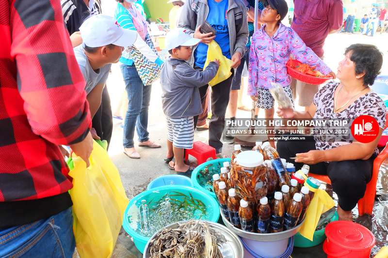 Đến tối, Tập thể HGL Corp tham quan chợ đêm Phú Quốc vô cùng nhộn nhịp và đông đúc.