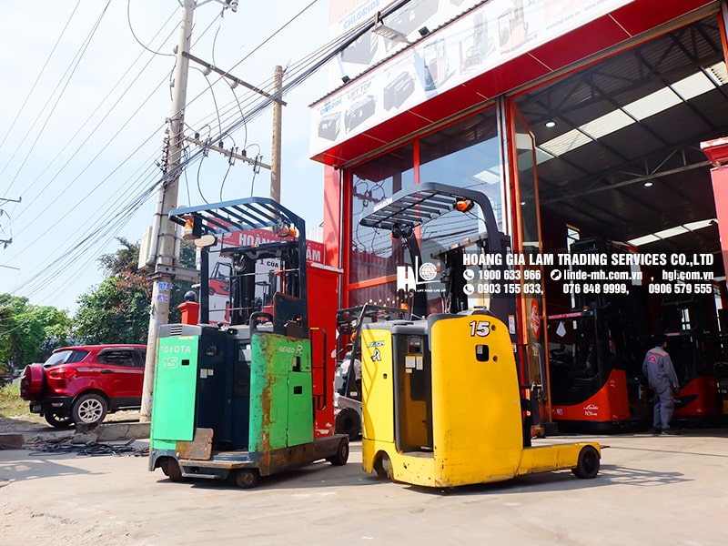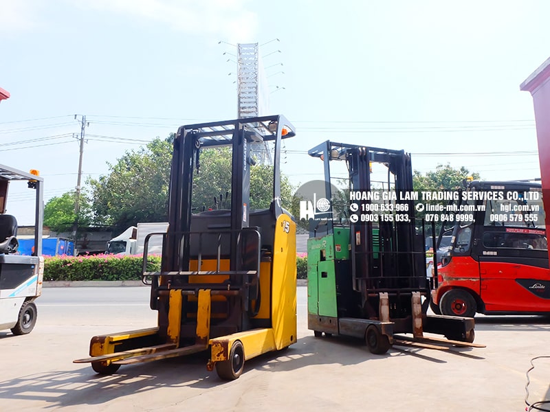 • Loại xe: Xe nâng reach truck đứng lái, xe nâng forklift (điện / diesel)