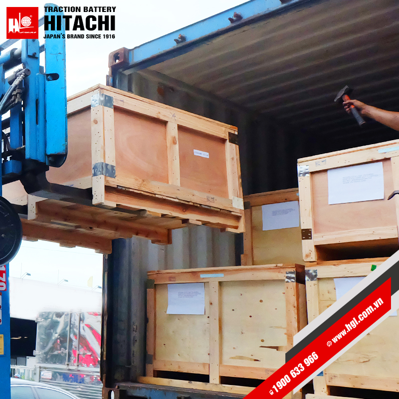 Container bình điện xe nâng HITACHI lại về Việt Nam.