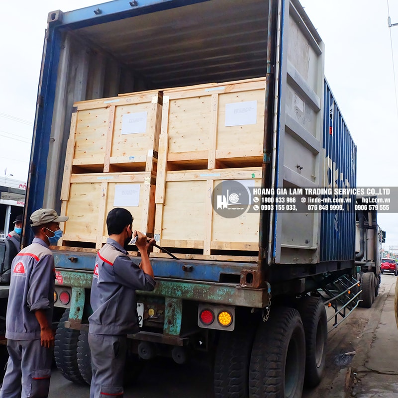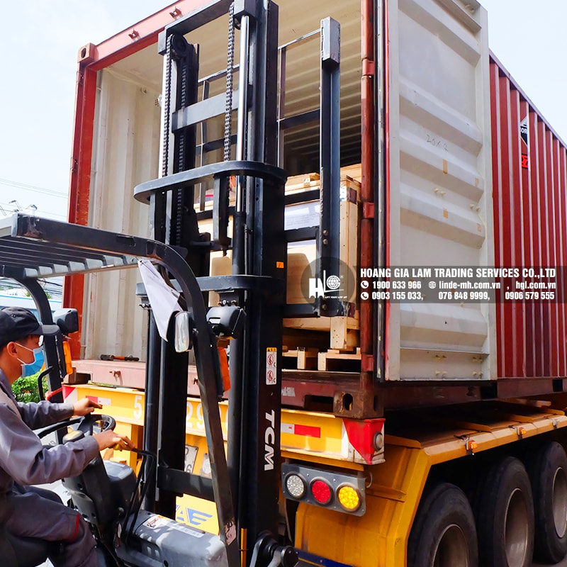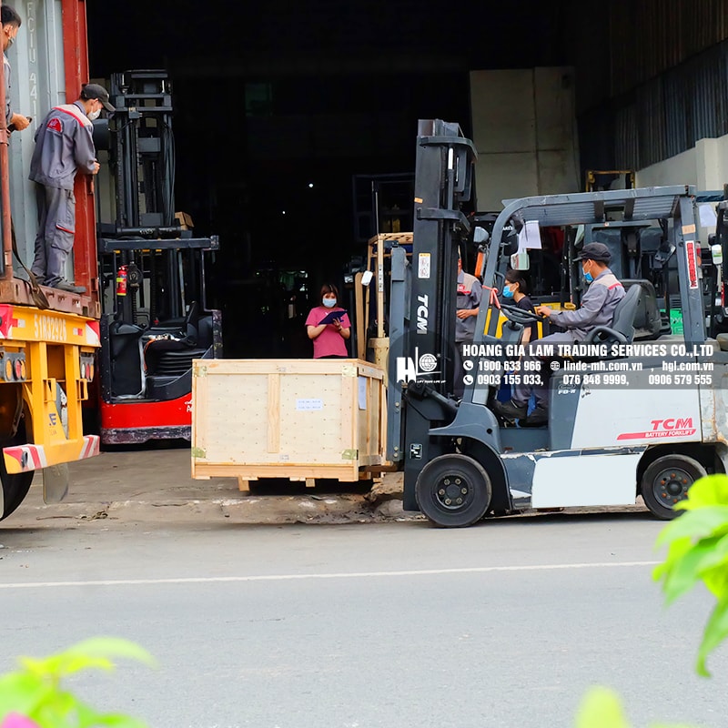 Một số hình ảnh xuống container bình điện xe nâng HITACHI (Thái Lan) về tháng 8/2020: