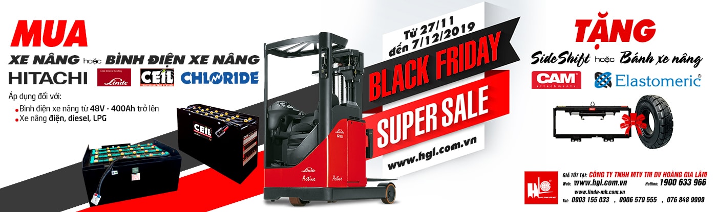 Black Friday 2019, CÔNG TY TNHH MTV TM DV HOÀNG GIA LÂM tặng Sideshift CAM hoặc bánh đặc xe nâng Elastomeric khi Quý Khách mua xe nâng / bình điện xe nâng HITACHI / CHLORIDE (CEIL).