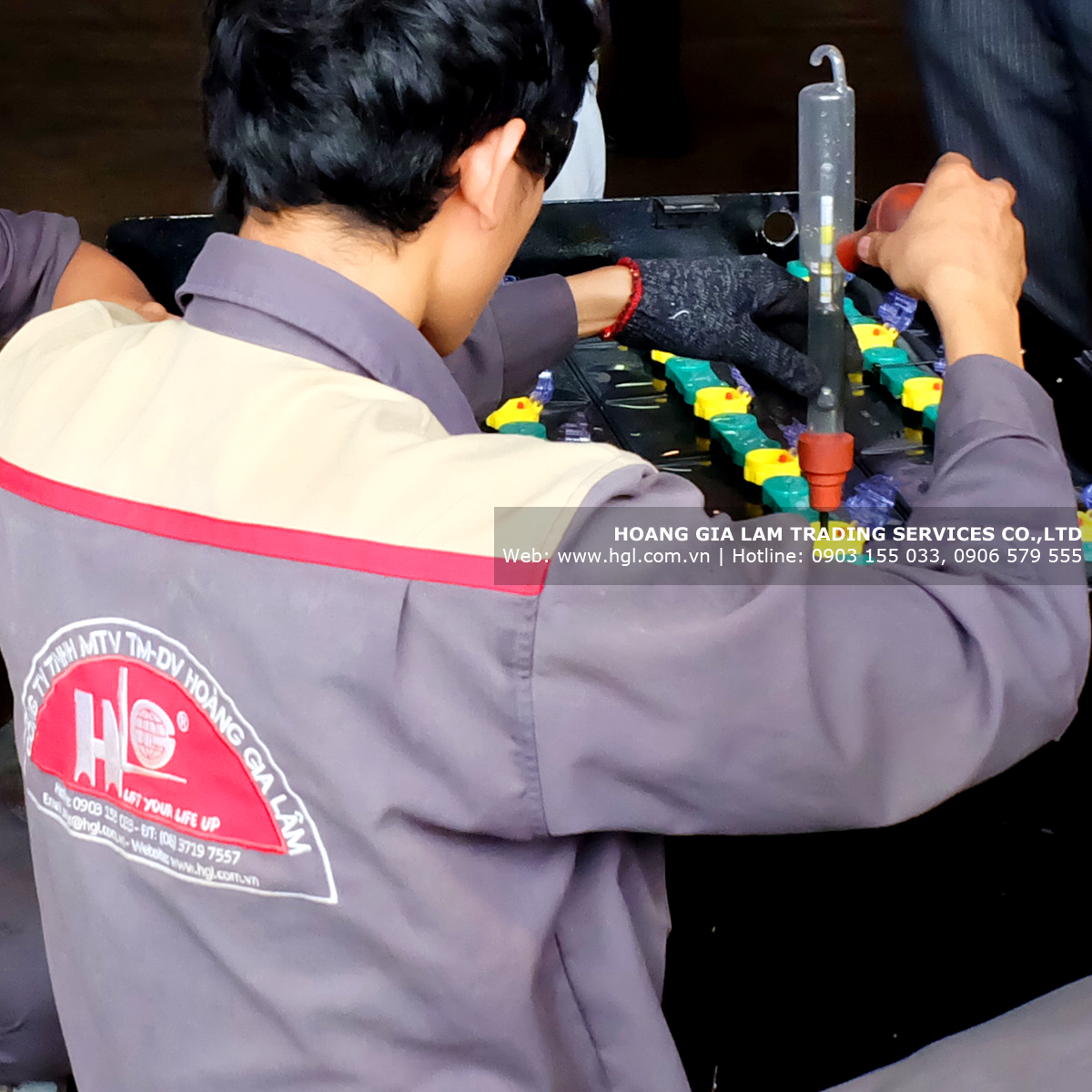 Không chỉ dừng lại tại đó, với mong muốn mang đến cho Khách hàng trên toàn quốc những chiếc bình điện xe nâng HITACHI chất lượng ngày một nâng cao hơn nữa. Năm 2016, đội ngũ nhân viên Kỹ thuật của HGL Co.,Ltd đã được tập huấn, trao đổi kinh nghiệm sản xuất & lắp đặt bình điện bởi các chuyên gia đến từ Nhật, Singapore.