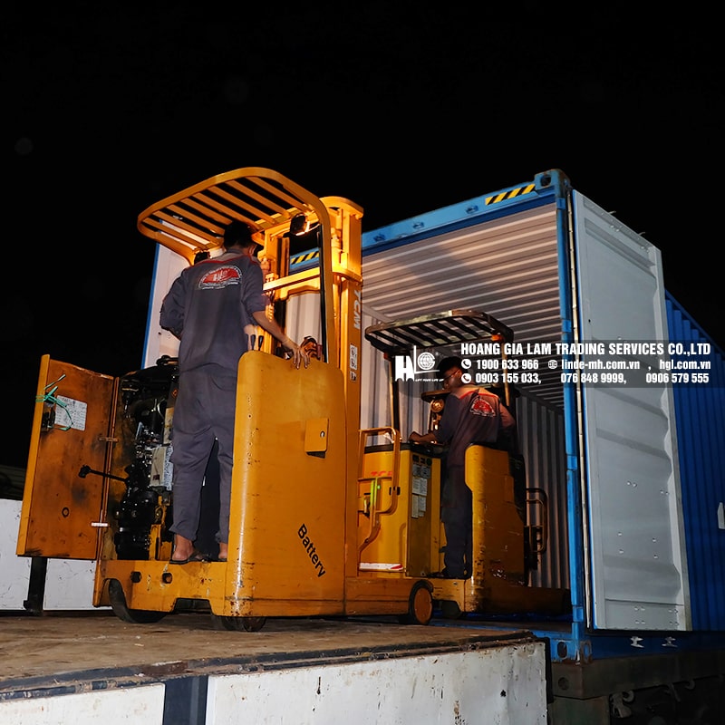 Công Ty TNHH MTV TM DV Hoàng Gia Lâm (HGL) vừa nhập một số dòng xe nâng reach truck đứng lái và xe nâng ngồi lái (điện, diesel) về Việt Nam.