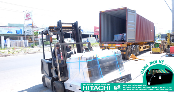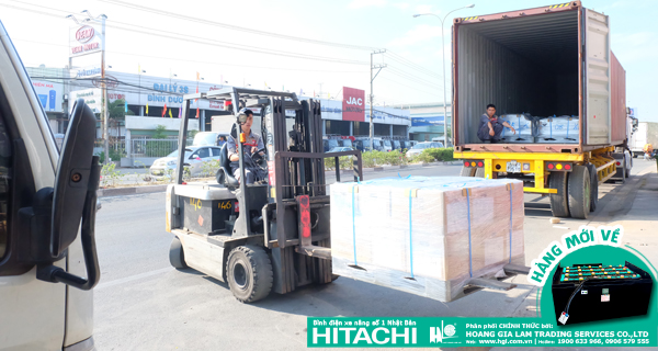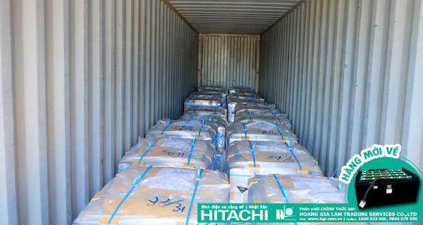 5 container bình điện xe nâng HITACHI (Japan) đã về tới Việt Nam. Thiết bị được nhập khẩu khẩu & phân phối bởi CÔNG TY TNHH MTV TM DV HOÀNG GIA LÂM (HGL Co.,Ltd) – Đại lý phân phối CHÍNH THỨC bình điện xe nâng HITACHI tại Việt Nam.