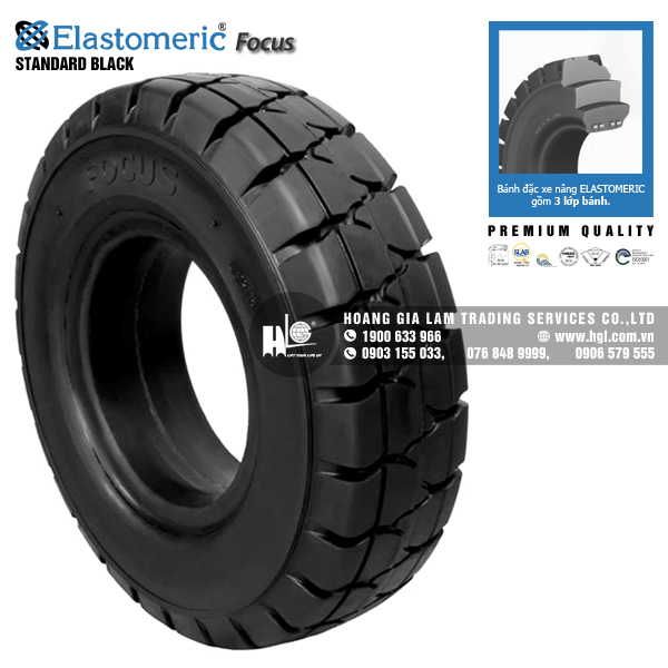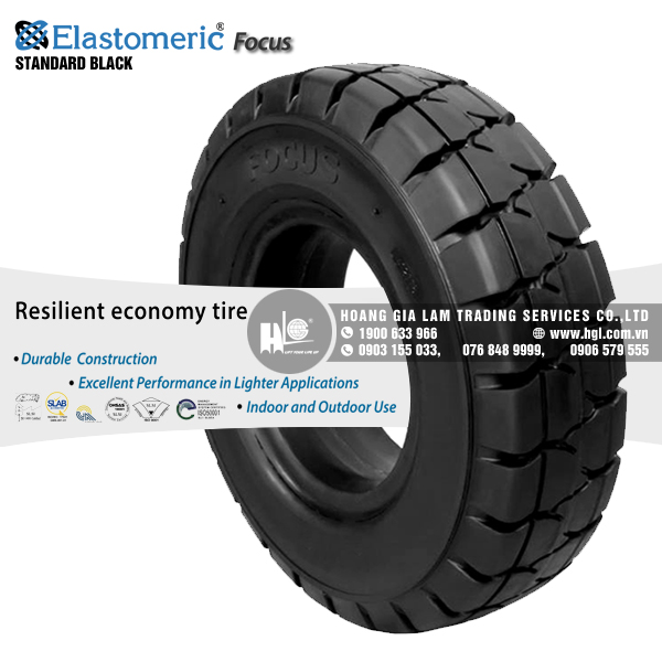 Specification Solid rubber tire ELASTOMERIC Focus (Standard Black)