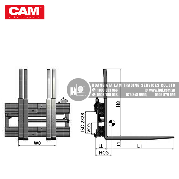 Model Capacity W8-W9 L1 H8 W1 x T1 W11 LL HCG Weight ISO 2328