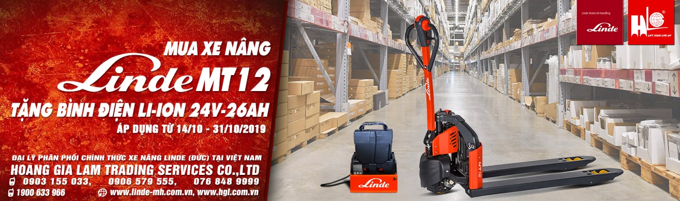 Từ 14/10/2019 đến hết ngày 31/10/2019, khi Khách hàng mua xe nâng tay điện Linde MT12 sẽ được tặng bình điện Li-ion 24V-26Ah mới 100%.