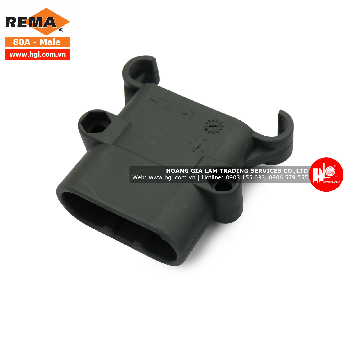 Giắc cắm xe nâng REMA 80A (Giắc đực) gồm đầu cắm và phích cắm cho cáp đồng trục cấp nguồn cho xe nâng điện. Thiết bị chịu dòng điện 80A (Nhập khẩu trực tiếp từ Châu Âu).